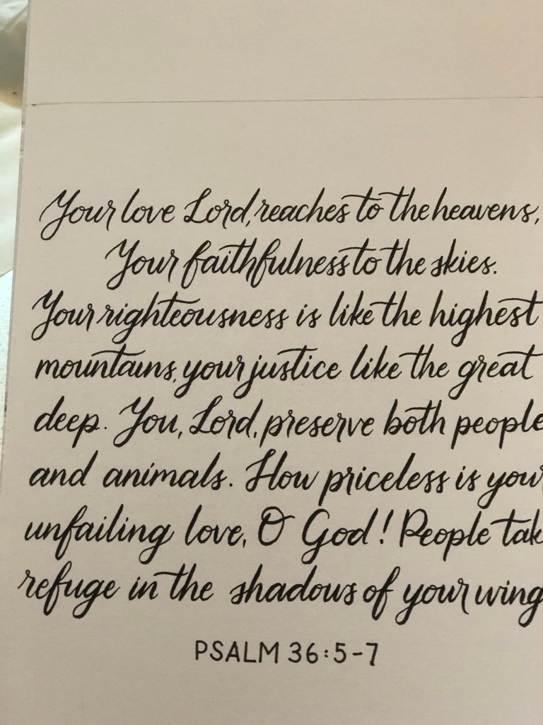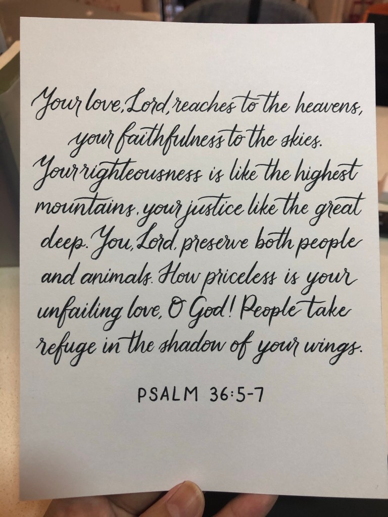 Here’s a real time video of the process, from layout to testing out strokes, to just having some fun before getting the actual artwork out. Thankful for the opportunity to bring this piece of God’s Word as a birthday gift.
